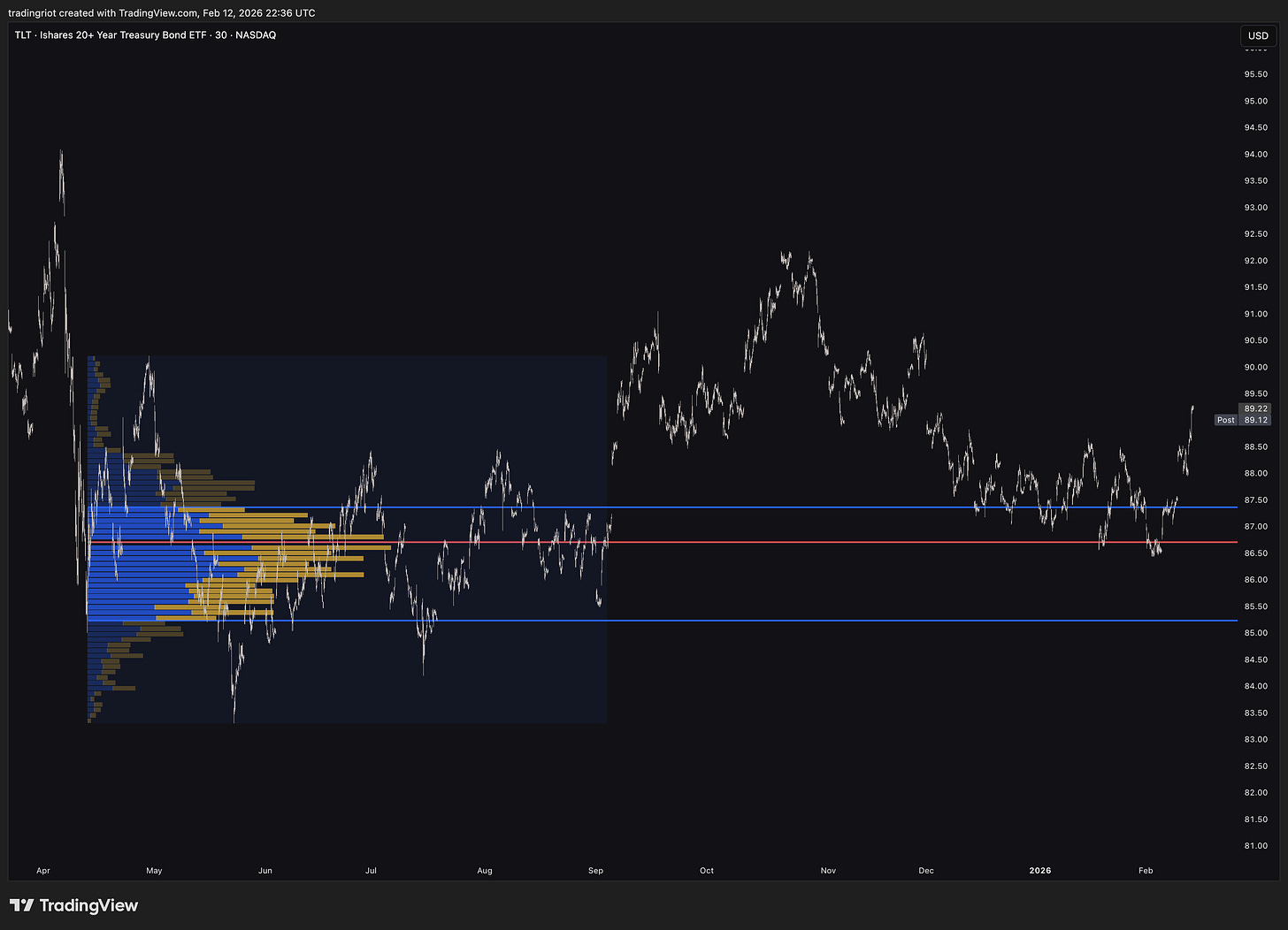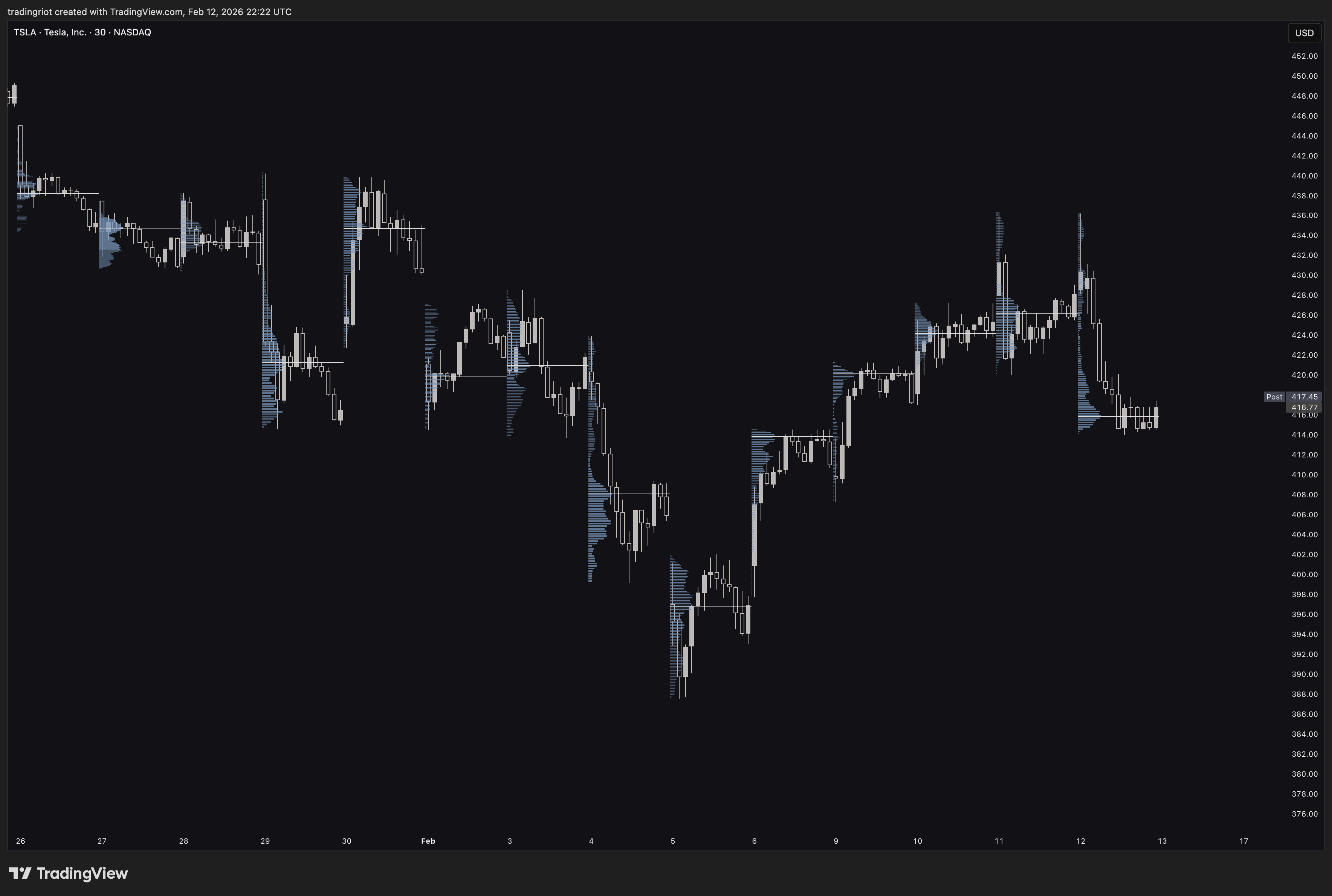 Market Profile gives you the time-based structure of that auction. Volume Profile gives you the volume-based structure. VWAP with standard deviation bands gives you a dynamic, representation of fair value and its boundaries.