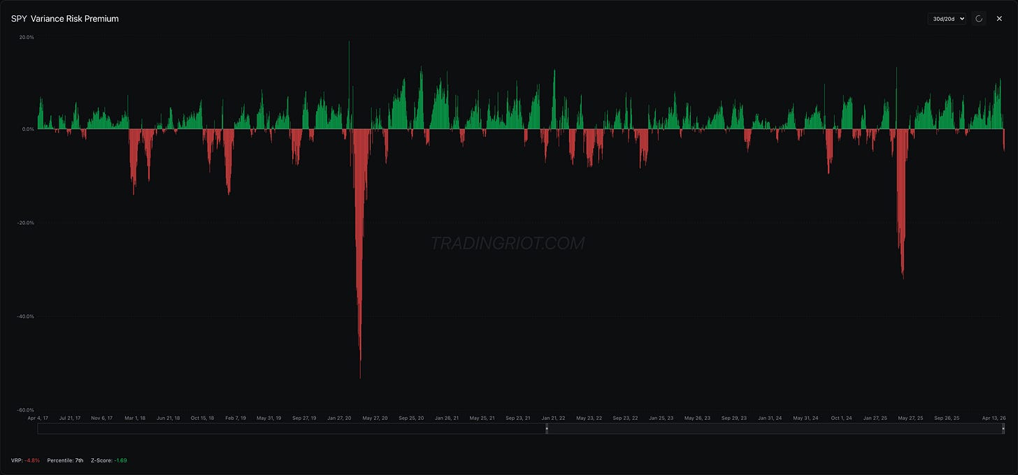There are several reasons for it, and VRP probably deserves its own article sometime in the future. But long story short, implied volatility is historically elevated because sellers demand compensation due to concave payoff structure, buyers are buying protection, and gamblers are gambling. All of this creates a structural imbalance between option buyers and sellers.