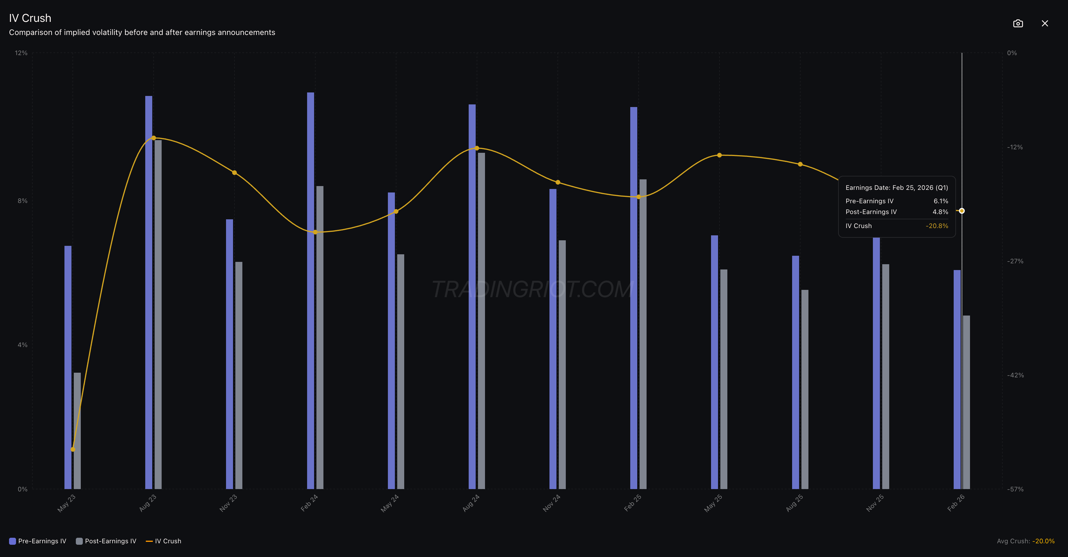 You can notice that during the last earnings, the pre-earnings IV was at 6.1% while post-earnings IV was 4.8%.