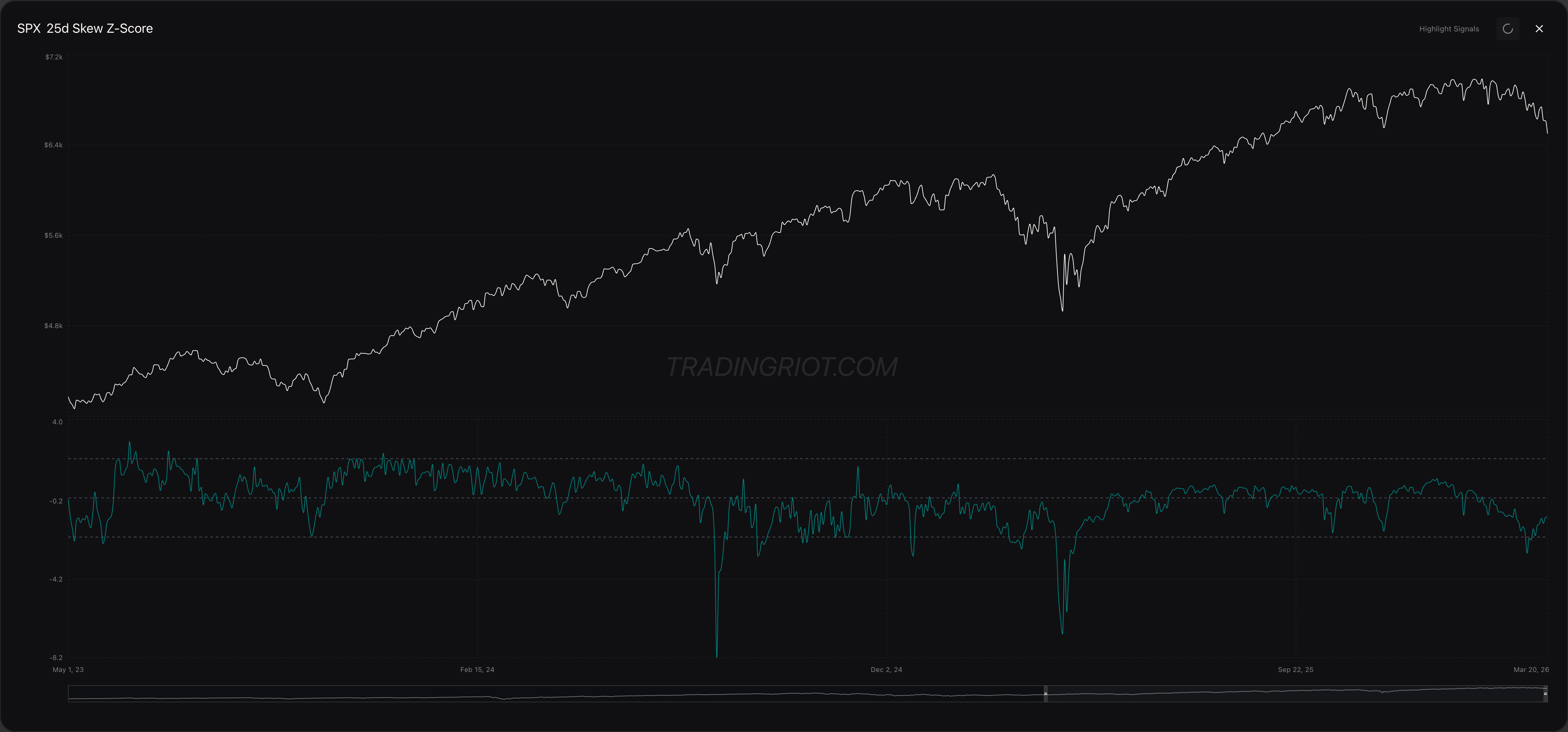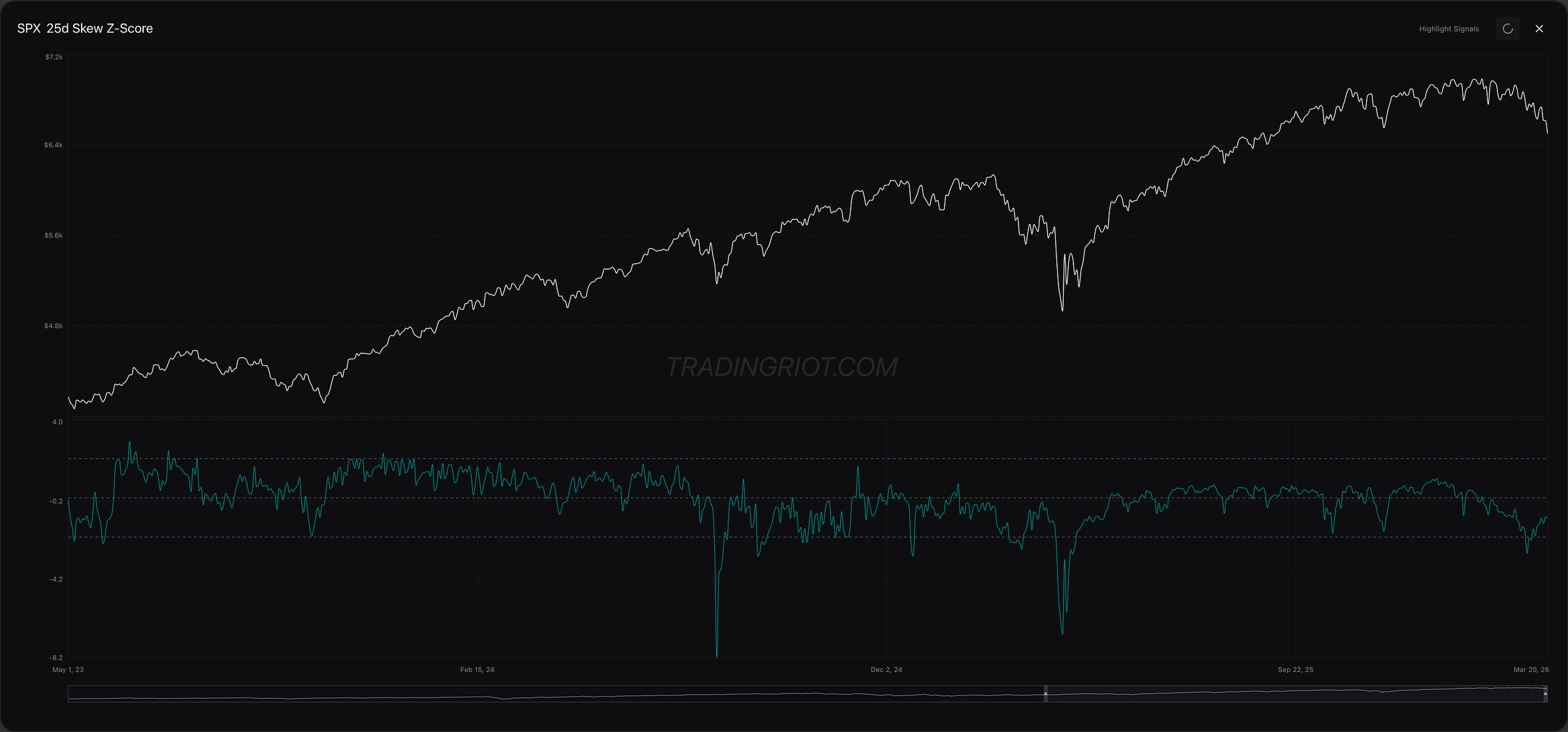 The broad stock market also isn't in peak panic just yet, with skew not hitting strong extremes on a yearly lookback.