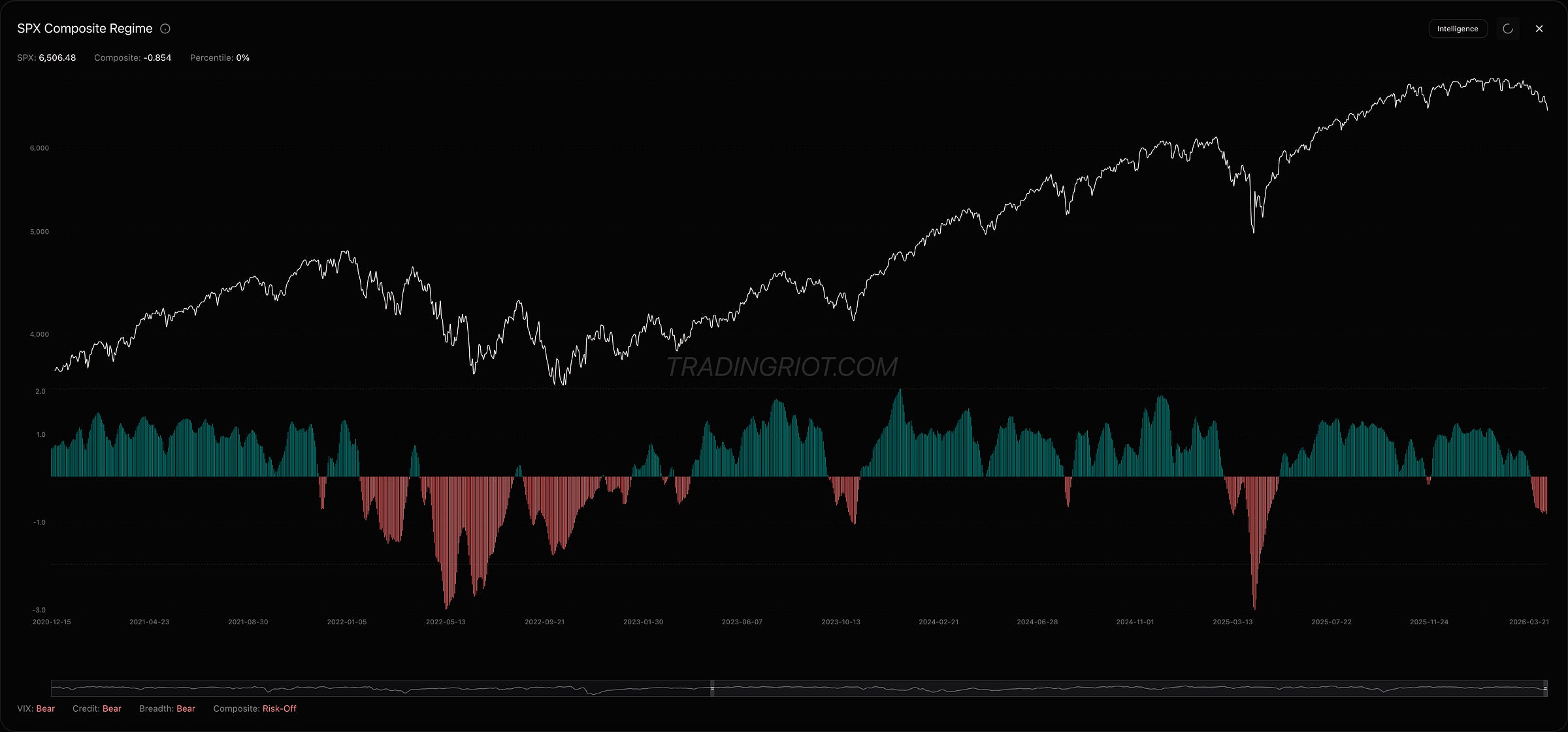 According to the composite regime indicator, SPX has been in risk-off territory since the start of March. This is measured by several regime indicators such as VIX term structure, credit spreads, and market breadth.