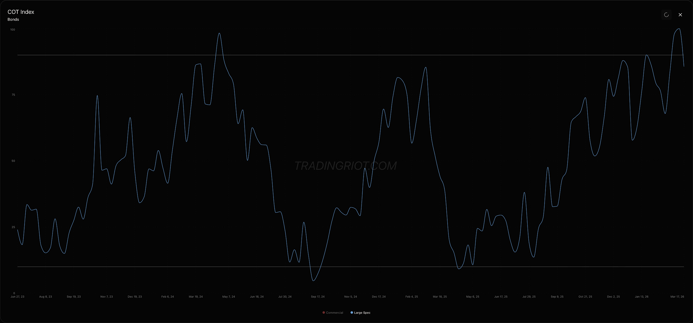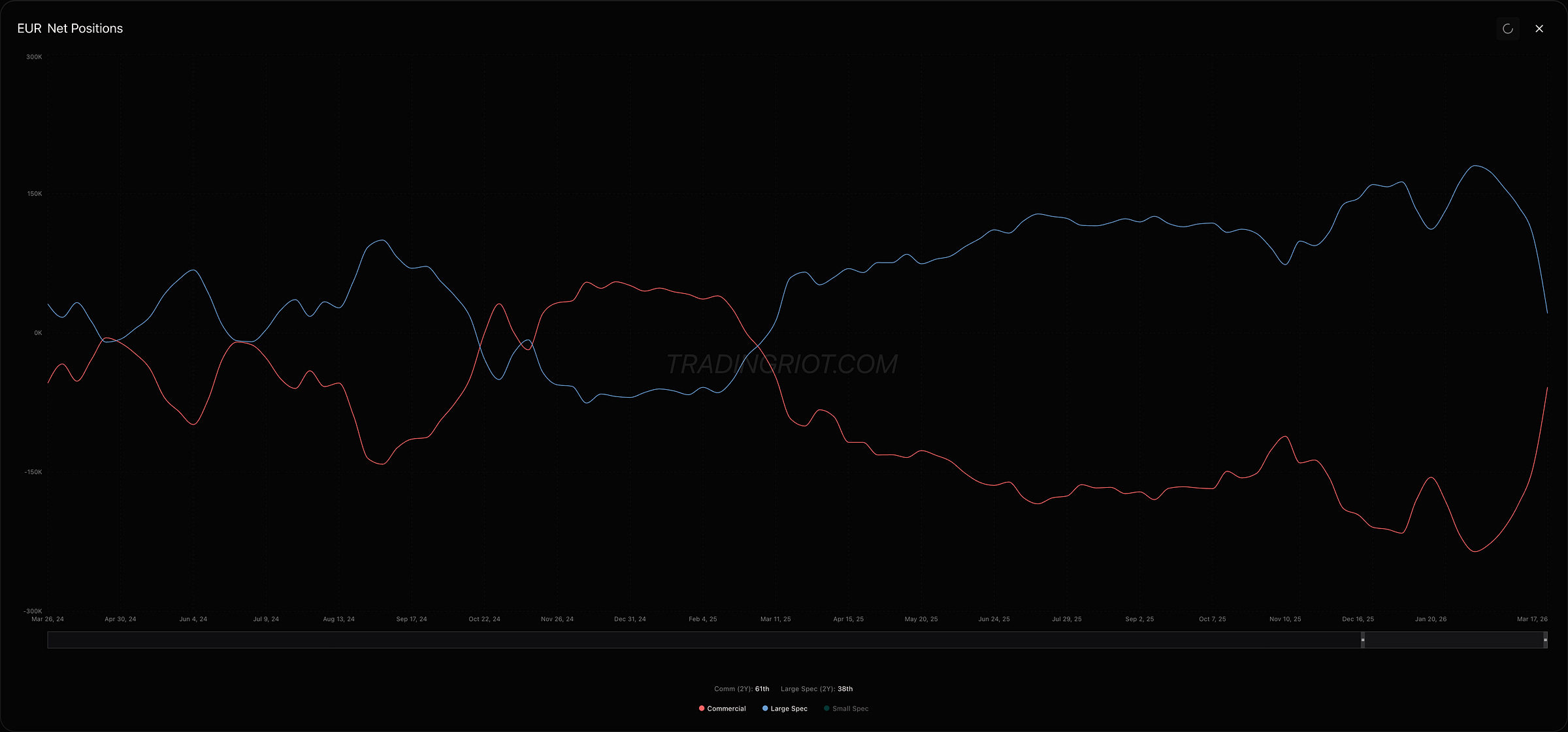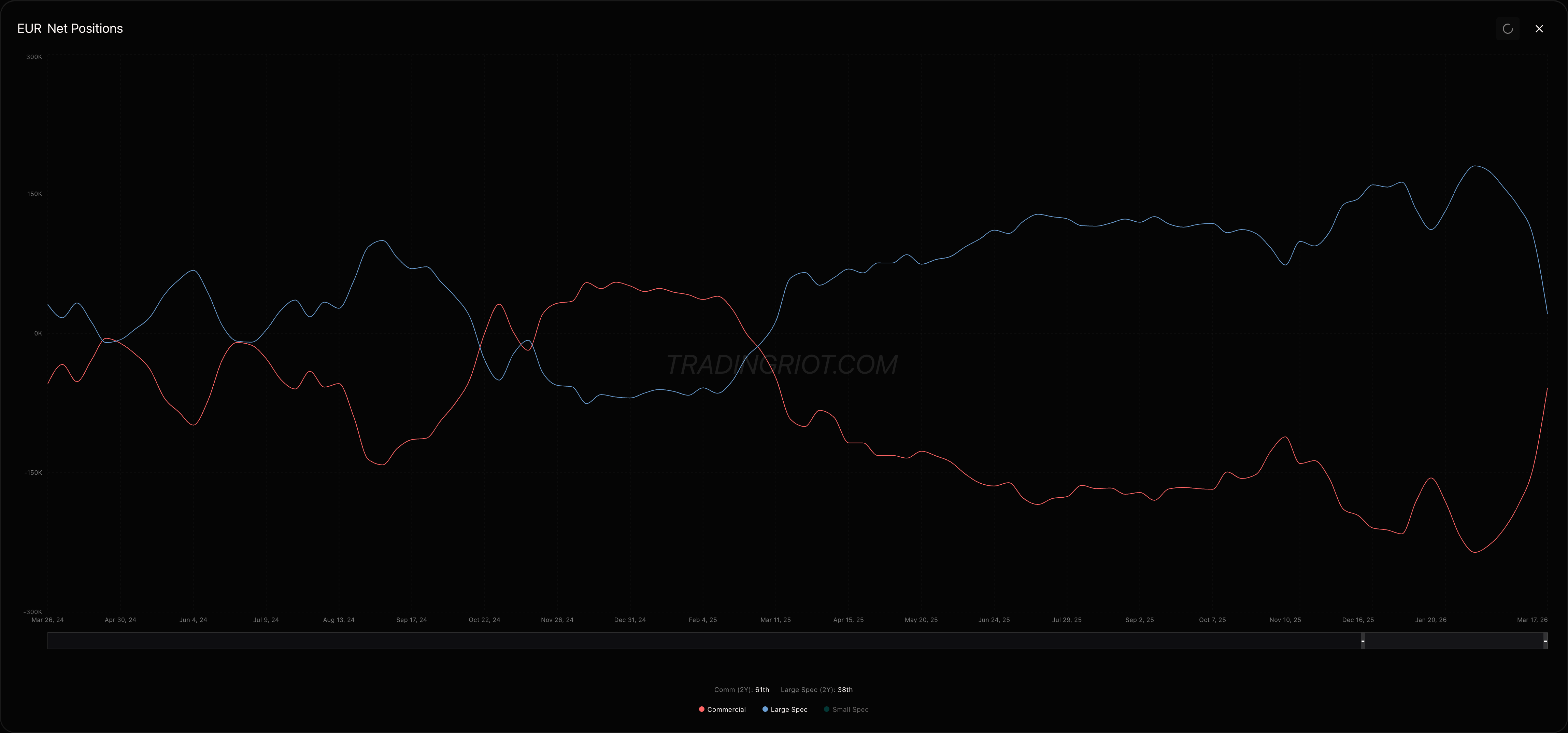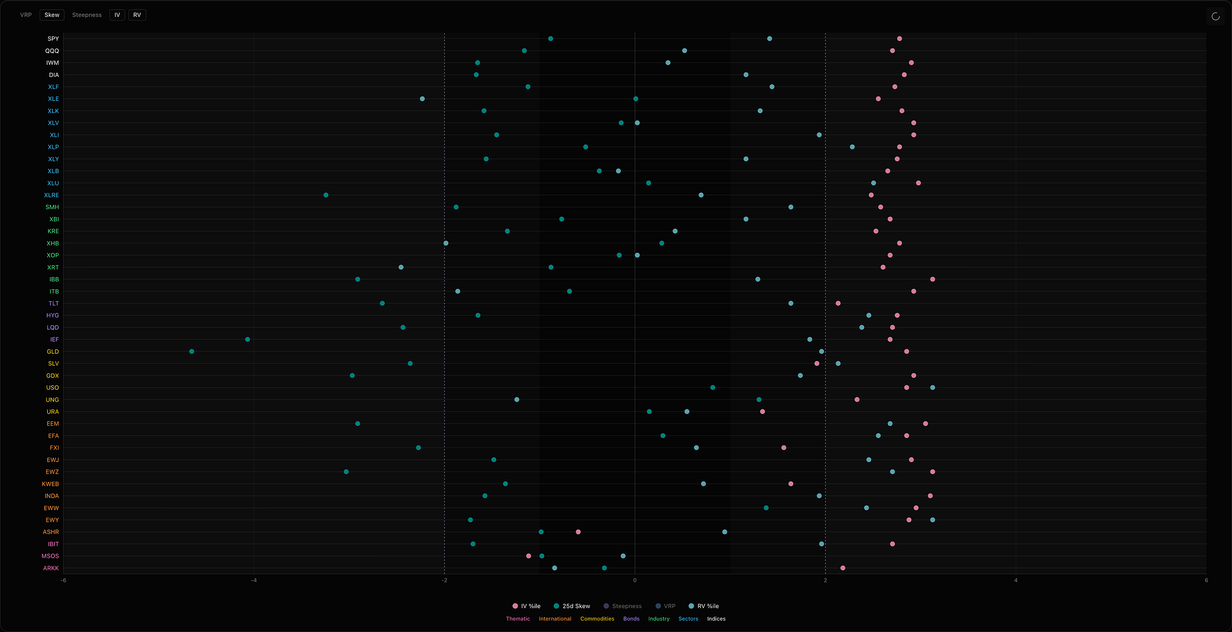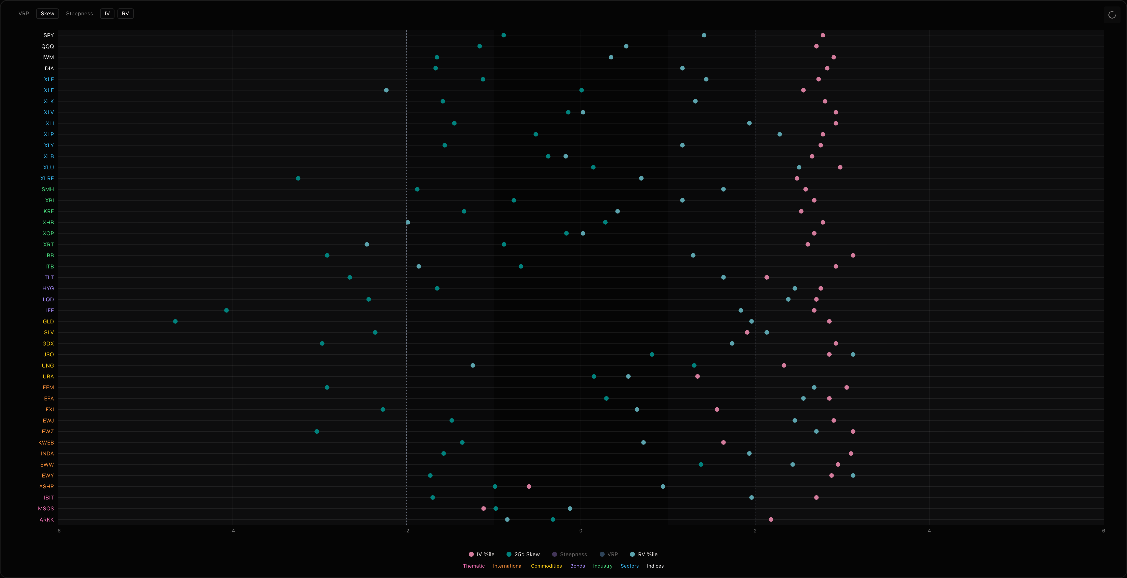This is also showing up in bonds. TLT, LQD, and IEF all got hit hard last week, and the skew confirms traders are aggressively bidding for downside protection across fixed income. Which is honestly not that big of a surprise considering large speculators were pilling into bond futures longs in Q1.
