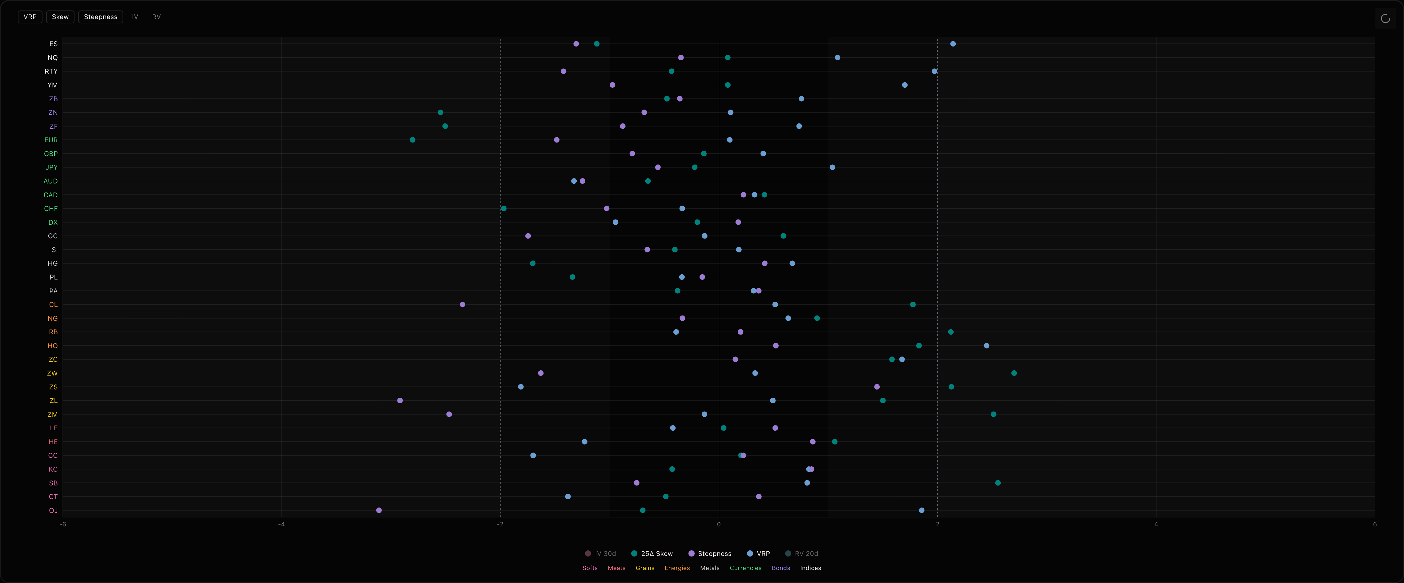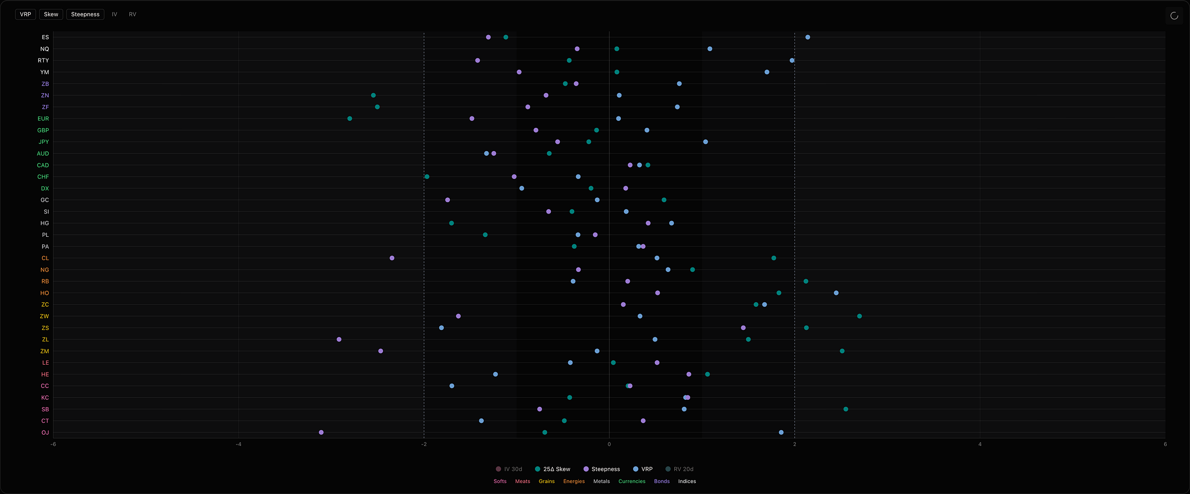 While the war is extremely unfortunate and I'd much rather not be living on the brink of World War 3, it brings a lot of opportunities and volatility across the board. Using 25-delta skew on CME and ICE options can give you a very quick narrative check across the entire futures complex.
