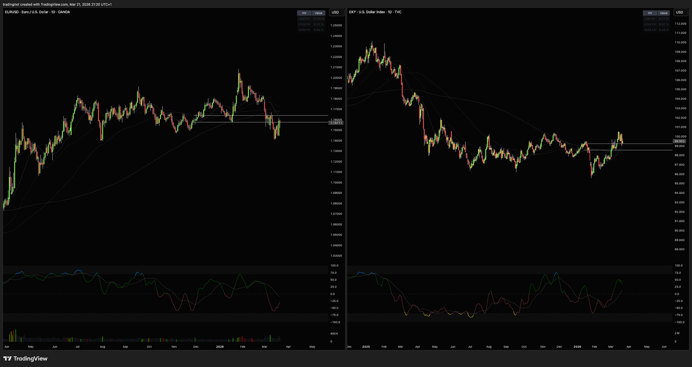The dollar has been one of the few clear winners since the conflict started. DXY surged from the mid-96s in February to above 100 in March, its best run since 2022. When everything else is getting hit, stocks, bonds, even metals , cash is king and the dollar is where global capital runs first.
