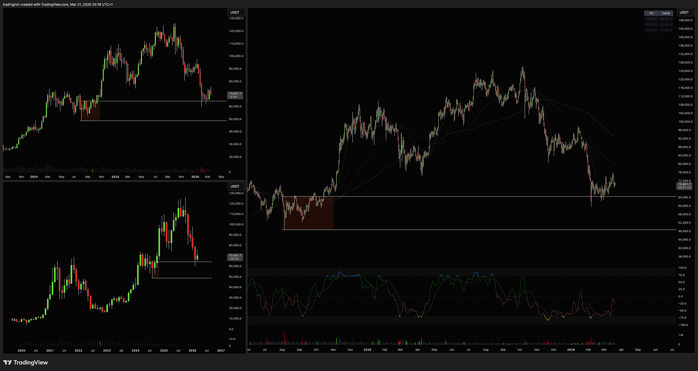 I nibbled in spot around 60k, which I believe is a solid level to buy, but since it's a monthly zone the invalidation is very wide, stretching towards the low 40s. After the selloff in the second half of the week, the market looks fairly tired, so I wouldn't be surprised to see another revisit of that zone.