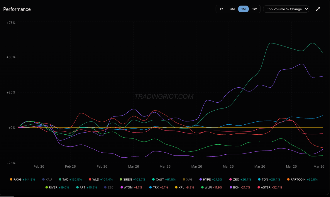 HYPE and TAO were the standout performers last week, rallying hard while everything else bled.