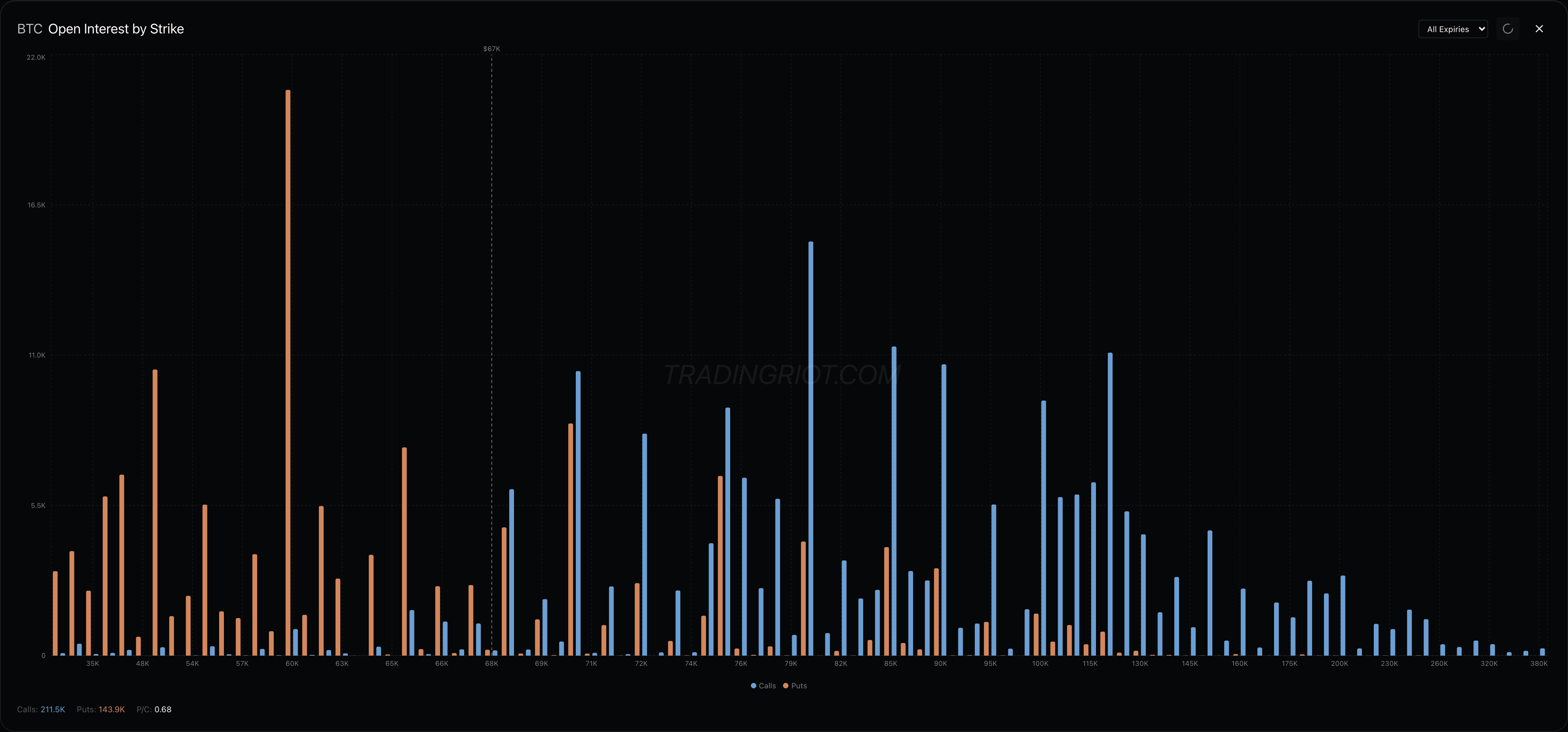 Revisiting this year’s low at 60k is not the most unreasonable thing to consider, especially as it’s a heavy magnet on the options side. The open interest by strike chart shows massive put concentration around the 60k level. When that much open interest sits at a single strike, dealers who sold those puts need to hedge their exposure by buying or selling the underlying as price approaches. That hedging flow effectively turning strikes with highest Open Interest into a support or resistance levels. The bigger the open interest, the stronger the magnet.