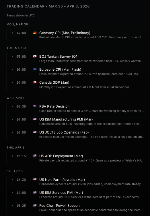 Next week is going to be another fun one. Almost every session carries high-impact news from both the US and other central banks. Friday is packed with NFP and a Powell speech, and if the jobs data comes in weak while wages stay hot, the recession conversation goes from background noise to front-page headline real fast.