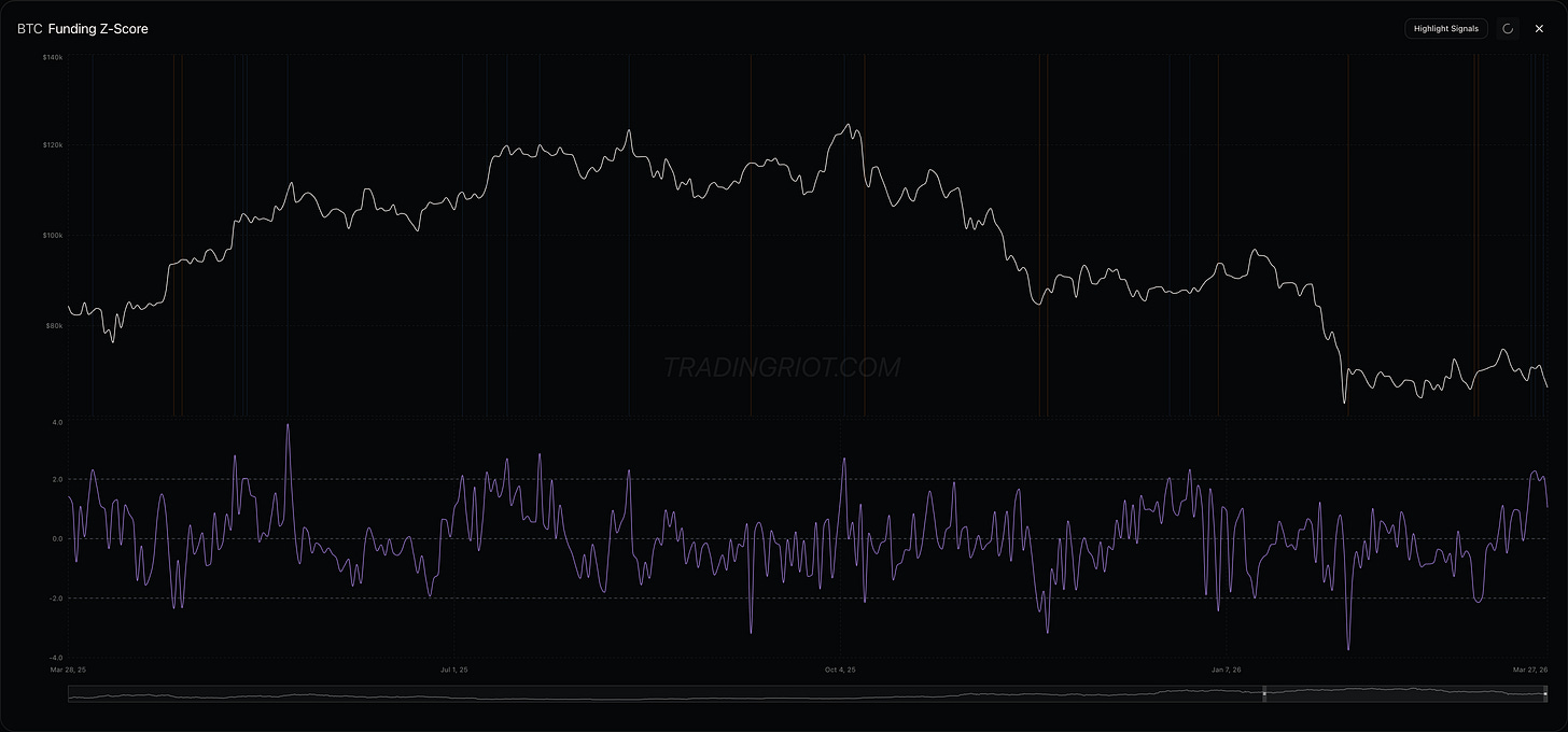 Bitcoin sold off alongside SPX. Funding rates spiked higher early in the week, showing some crowded longs coming in, which provided a great intra-week fading opportunity. Price is about to close more or less flat, unless something crazy happens tomorrow, which you never know in this market.