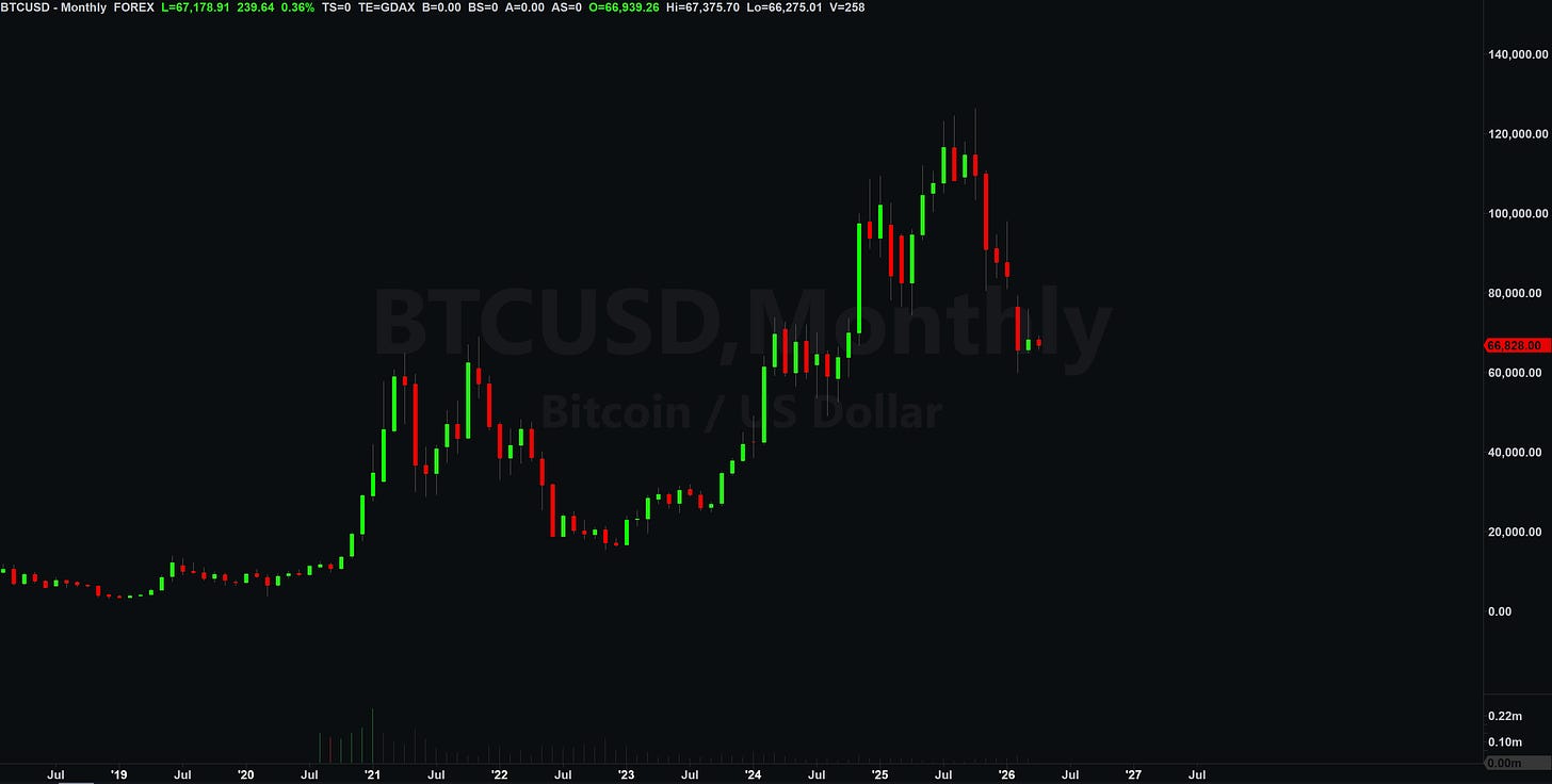 For Bitcoin, April closed as an inside month where the monthly highs and lows should bring a reaction when tested, although I’d still be surprised to see price revisiting the yearly lows.